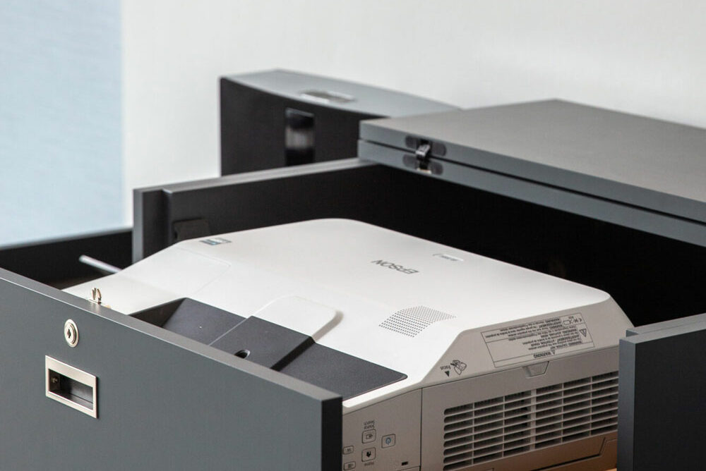 Unsere Räume sind voll ausgestattet: Beamer, ClickShare, Soundanlage, Flipchart und eine Technikschublade mit Adaptern, Presenter und mehr. In vielen Räumen stehen zusätzlich Nespresso-Maschine und Minibar bereit.